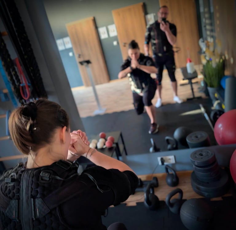 EMS (Electrical Muscle Stimulation) to inteligentna technologia przyszłości, która redefiniuje pojęcie skutecznego treningu. Wykorzystujemy specjalistyczny kombinezon wyposażony w elektrody, które wysyłają do Twoich mięśni precyzyjne impulsy elektryczne. Efekt? Twoje ciało pracuje kilkukrotnie intensywniej niż podczas tradycyjnych ćwiczeń, mimo że Ty wykonujesz proste ruchy.
